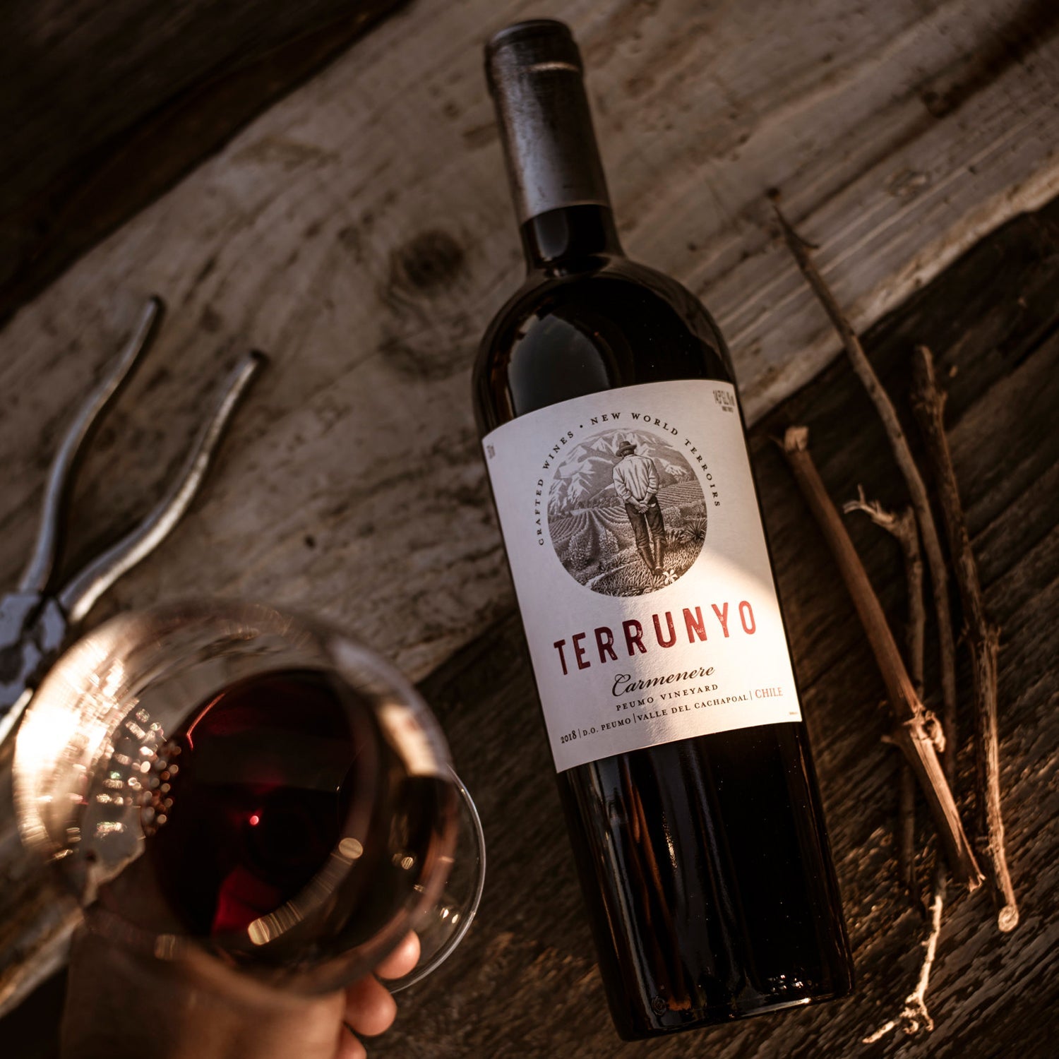 Terrunyo Carmenere celebra a uva mais emblemática do Chile, a Carmenere, considerada extinta em Bordeaux e redescoberta no Vale Central chileno em 1994. Esta variedade francesa encontrou no terroir chileno condições únicas para expressar todo seu potencial, tornando-se símbolo da viticultura do país. Terrunyo, que significa "senso de lugar", representa a conexão profunda entre a terra e a uva.